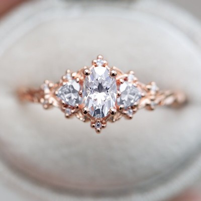0.69CT Oval & Triangle Cut VVS Moissanite S925 Silver Engagement Ring – Timeless Women’s Engagement Ring