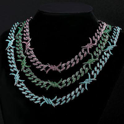 10mm Iced Cuban Barb Wire Chain-Emerald/Black/Blue/Yellow/Purple/White