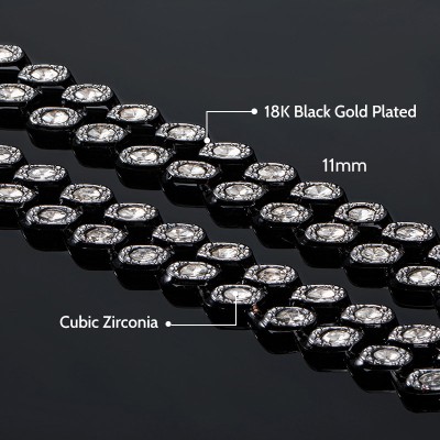 11mm Marquise Cut Cuban Chain in Black Gold