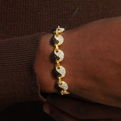 12mm 8” Iced Yin Yang Link Bracelet in Gold is a hip-hop inspired bracelet designed for layered styling. Finished with brilliant shine, it delivers visual impact.