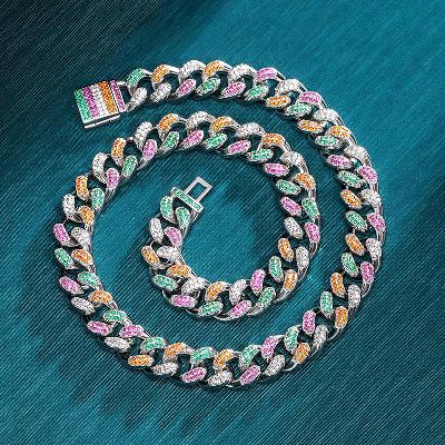 12mm Iced Handset Multi-Color Miami Cuban Chain