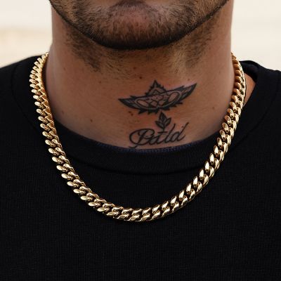 The 12mm Stainless Steel Cuban Chain in Gold is a street-ready piece built for those who want their jewelry to speak louder than words. With eye-catching shine and a refined finish, it instantly upgrades any outfit.