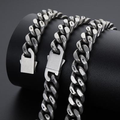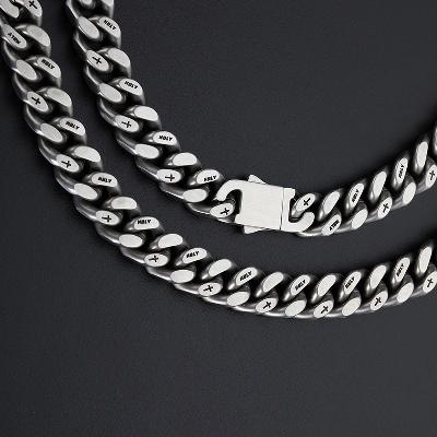13mm Frosted Christian Holy Cross Stainless Steel Cuban Chain