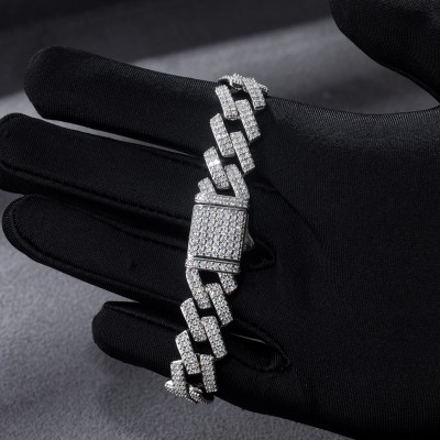 13mm Moissanite Prong Cuban Bracelet in S925 Silver is a street-luxury piece designed for streetwear styling, offering timeless elegance with a high-polish silver tone.