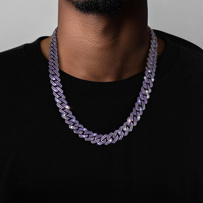 If you’re looking for a chain that blends street style with luxury appeal, the 14mm 2-Row Purple Iced Handset Prong Cuban Chain is the perfect choice. Ideal for daily wear, gifting, or making a bold fashion statement.