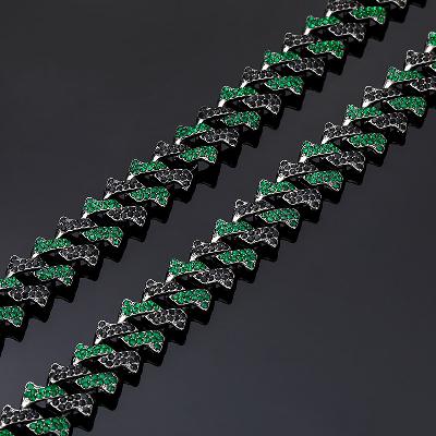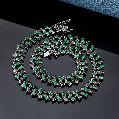 Exclusive 14mm Emerald & Black Iced Cuban Spiked Chain in Black Gold crafted to deliver shine, confidence, and standout style for modern fashion lovers.