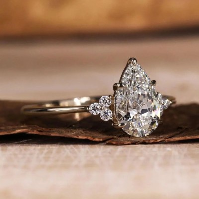 2.15CT Pear & Round Cut VVS Moissanite S925 Silver Engagement Ring