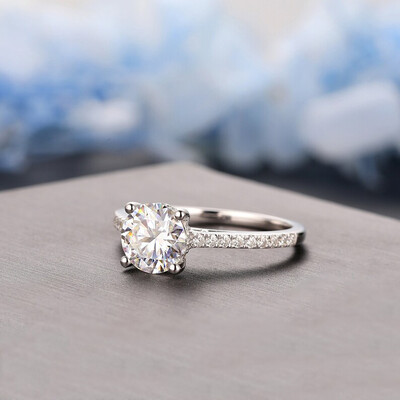 2.23CT Round Cut VVS Vintage Hidden Halo Moissanite S925 Silver Engagement Ring