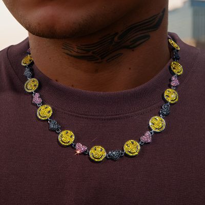 The 20” Smile Face & Heart Link Chain in Black Gold is a statement piece built for those who want their jewelry to speak louder than words. With eye-catching shine and a refined finish, it instantly upgrades any outfit.
