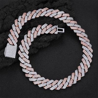 20mm S925 Rose & White Gold Moissanite Prong Cuban Link Chain