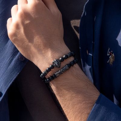 2pcs Lion Black Obsidian Beaded Stretch Bracelet is a statement bracelet inspired by contemporary hip-hop culture, offering a balance of durability, shine, and everyday wearability.