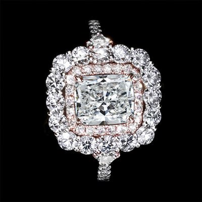 5.17CT Radiant & Round Cut VVS Moissanite S925 Silver Engagement Ring