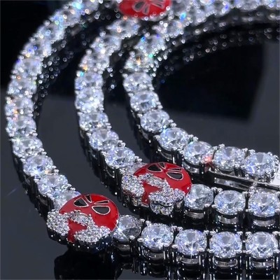 Street-ready 5mm Luminous Red Angry face Tennis Chain in White Gold crafted to deliver shine, confidence, and standout style for modern fashion lovers.