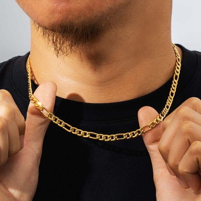 Street-ready 6mm/7mm/8mm/9mm/10mm/12mm Figaro Chain in Gold crafted to deliver shine, confidence, and standout style for modern fashion lovers.