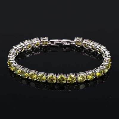 6mm Olive Green Tennis Bracelet in 18K White Gold blends street-luxury aesthetics with sleek reflective surface, making it ideal for casual and party looks.