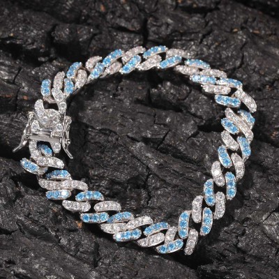 Designed with modern street fashion in mind, 8mm Blue&White Iced Cuban Bracelet delivers a strong presence through its modern urban structure and refined detailing.