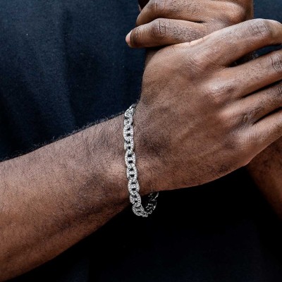 8mm Iced G-link Bracelet in White Gold is a statement bracelet inspired by contemporary hip-hop culture, offering a balance of durability, shine, and everyday wearability.