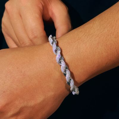Designed with modern street fashion in mind, 8mm Iced Rope Bracelet for Men delivers a strong presence through its hip-hop inspired structure and refined detailing.