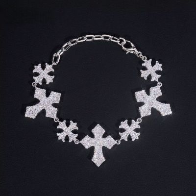 925S & VVS Moissanite Cross Bracelet is a hip hop jewelry piece designed for gift giving, offering maximum brilliance with a white gold finish.