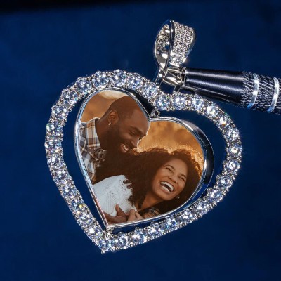 925S & VVS Moissanite Custom Love Heart Shaped Rotatable Picture Pendant – 1.2″