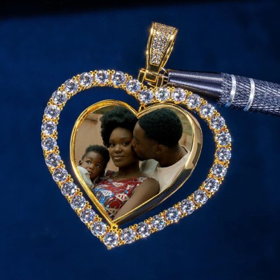 925S & VVS Moissanite Custom Love Heart Shaped Rotatable Picture Pendant – 1.2″ is a moissanite luxury piece designed for streetwear styling, offering bold presence with a brilliant moissanite sparkle.
