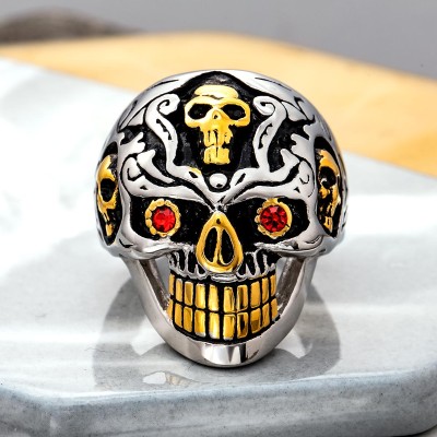 Premium street-style ring inspired by biker red eyes skull stainless steel ring, designed for bold everyday wear.