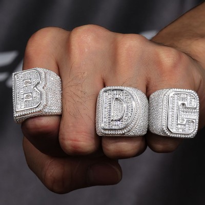 Premium street-style ring inspired by custom baguette cut initial letters ring, designed for bold everyday wear.