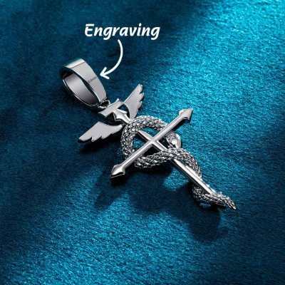 Ideal for those who value individuality and modern luxury, the Detached Wings Cross with Snake Greek Caduceus Pendant brings personality to your style and elevates your jewelry collection with effortless confidence.