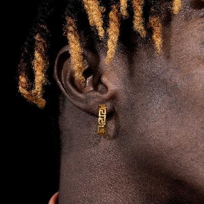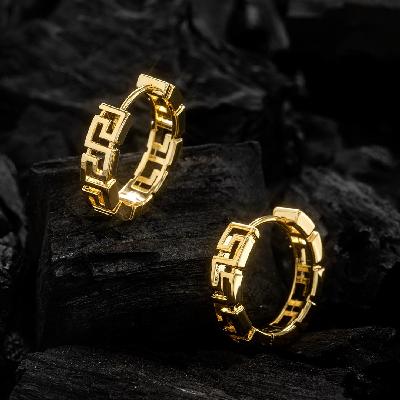The Greek Key Hoop Earrings in Gold showcases crystal intensity that helps balance luxury with street style. Every angle reflects careful craftsmanship, making these earrings a refined statement rather than a simple accessory.