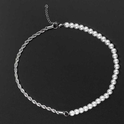Half Pearl and Half Rope Chain in White Gold