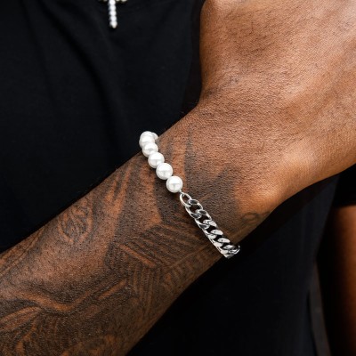 The Half Pearl and Steel Cuban Bracelet is crafted for those who prefer standout wristwear. Its bold statement design and sleek reflective surface surface create a bold visual impact without sacrificing comfort.