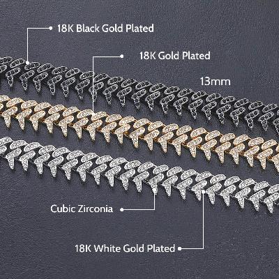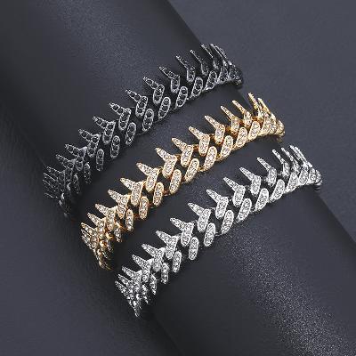 Designed with modern street fashion in mind, Iced 13mm Rivet Spike Thorns Cuban Bracelet delivers a strong presence through its street-luxury structure and refined detailing.