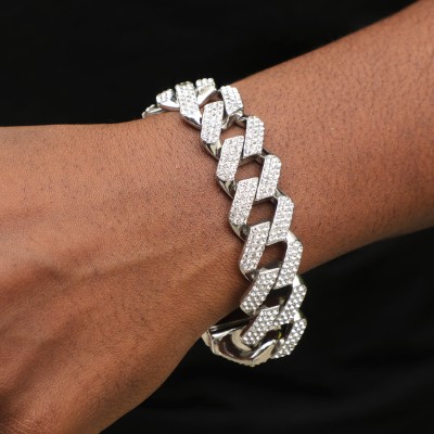 Iced 20mm Miami Cuban Bracelet with Big Box Clasp in White Gold is a statement bracelet inspired by contemporary hip-hop culture, offering a balance of durability, shine, and everyday wearability.