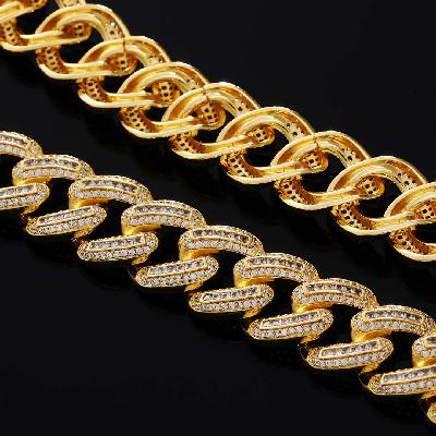 If you’re looking for a chain that blends street style with luxury appeal, the Iced 20mm Square and Round Stones Cuban Link Chain in Gold is the perfect choice. Ideal for daily wear, gifting, or making a bold fashion statement.