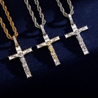 Iced Baguette Cut Crucifix Cross Pendant
