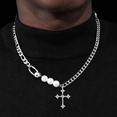 Elite Iced Cross Pearl and Steel Chain Necklace crafted to deliver shine, confidence, and standout style for modern fashion lovers.