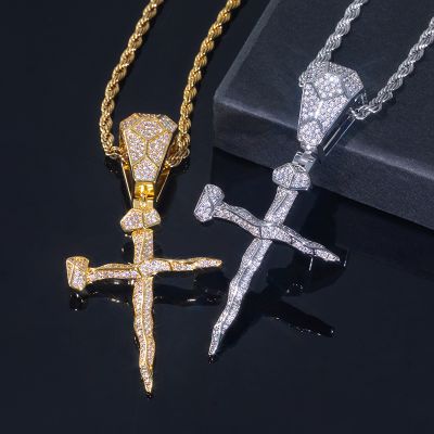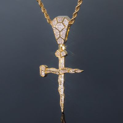 Ideal for those who value individuality and modern luxury, the Iced Curved Nail Cross Pendant brings personality to your style and elevates your jewelry collection with effortless confidence.