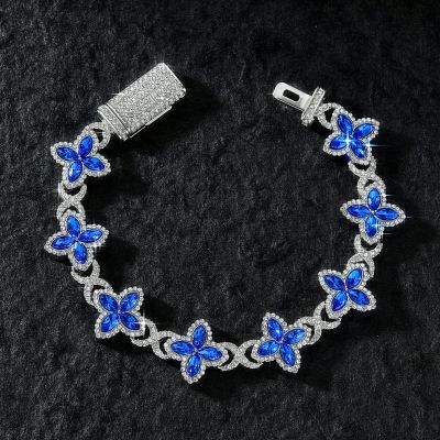 Iced Out 17mm Sapphire Clover Bracelet in White Gold is a street-luxury bracelet designed for casual and party looks. Finished with brilliant shine, it delivers confidence.