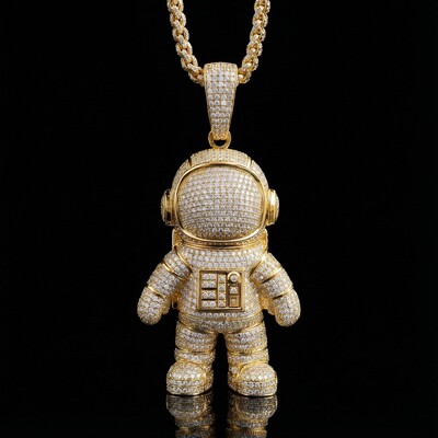 The Iced Out Astronaut Pendant features crystal intensity that helps create a strong visual impression. Its design focuses on visual depth, clean detailing, and a finish that feels confident rather than flashy.