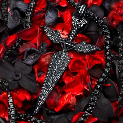 Ideal for those who value individuality and modern luxury, the Iced Out Black Angel Wings Sword Pendant brings personality to your style and elevates your jewelry collection with effortless confidence.