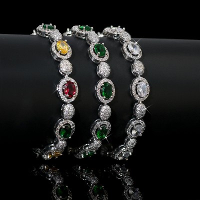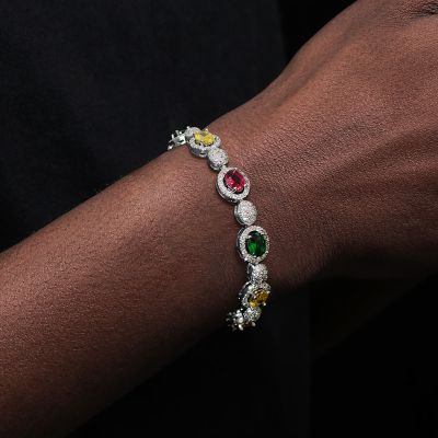Iced Out Oval Stone Bracelet in White Golding