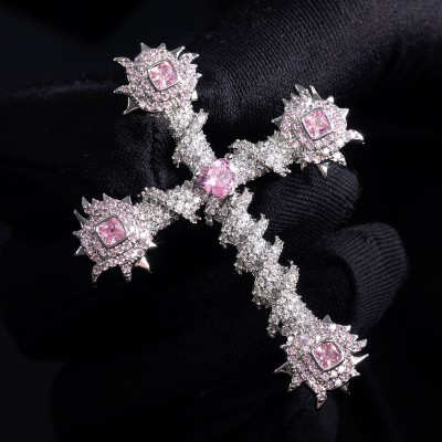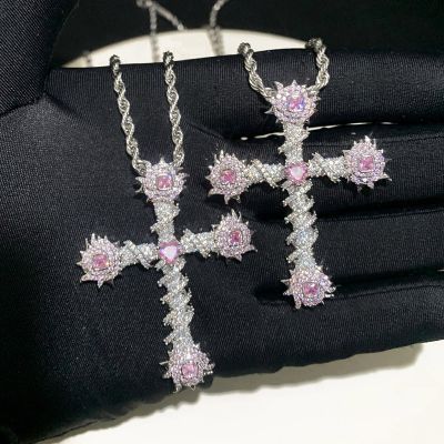 Ideal for those who value individuality and modern luxury, the Iced Pink Heart Cross of Thorns Pendant brings personality to your style and elevates your jewelry collection with effortless confidence.