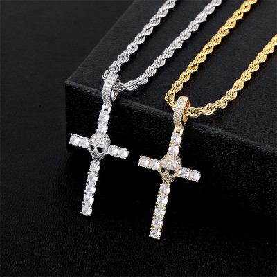Iced Skull Head Cross Pendant