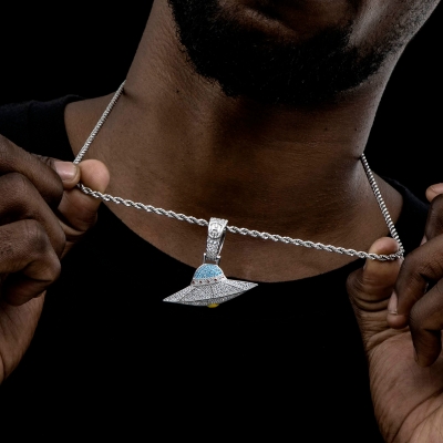 Ideal for those who value individuality and modern luxury, the Iced UFO Pendant in White Gold brings personality to your style and elevates your jewelry collection with effortless confidence.