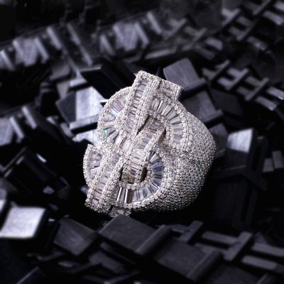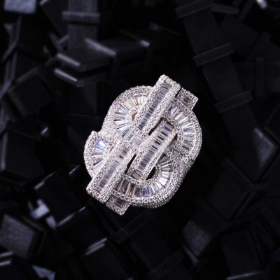 Made to Order Moissanite Dollar Sign Baguette Cut S925 Silver Men’s Ring