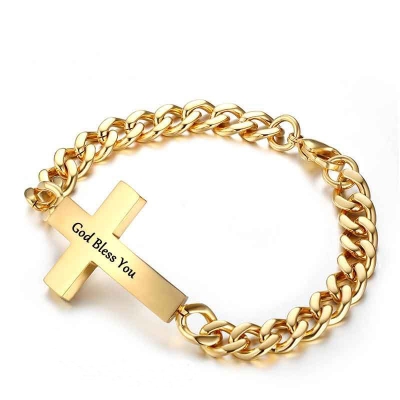 Men’s Personalized Engraved Cross Cuban Bracelet in Gold
