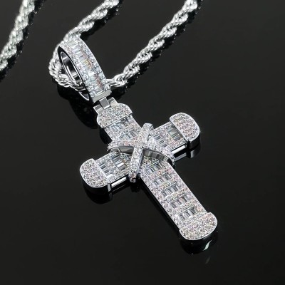 The Micro Pave Baguette Cut Cross Pendant in White Gold features crystal intensity that helps amplify your presence instantly. Its design focuses on visual depth, clean detailing, and a finish that feels confident rather than flashy.