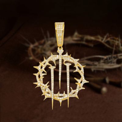 Micro Paved Crown Of Thorns with Nails Pendant