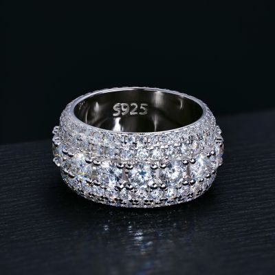 Moissanite Round Cut Band Ring in S925 Sterling Silver is a premium iced piece designed for streetwear styling, offering bold presence with a brilliant moissanite sparkle.