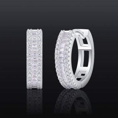 Moissanite Triple Row Hoop Earrings In S925 Silver is a street-luxury piece designed for gift giving, offering timeless elegance with a mirror-like shine.